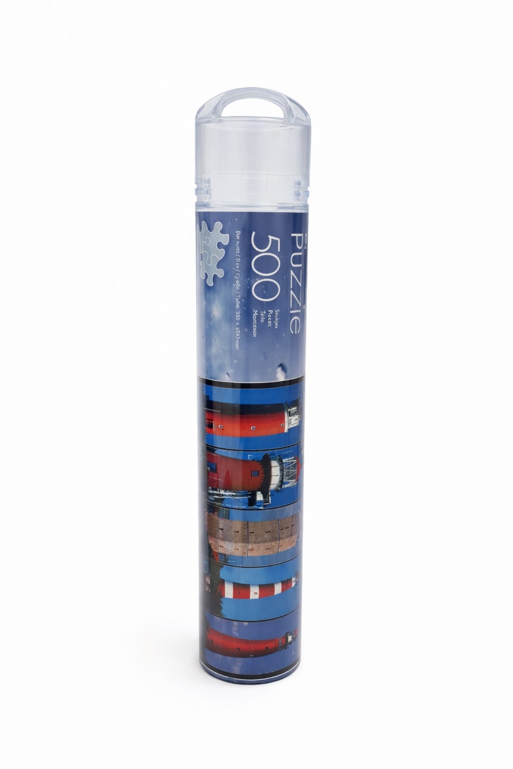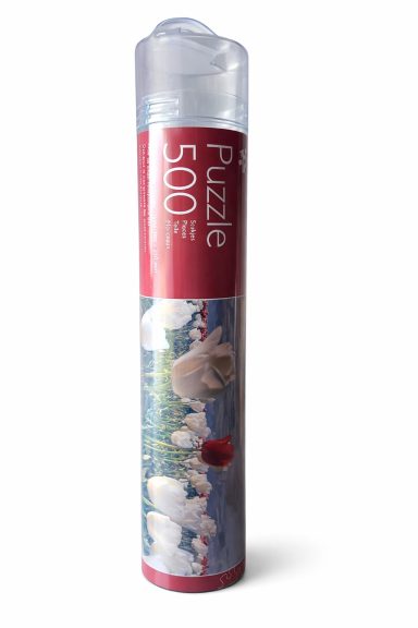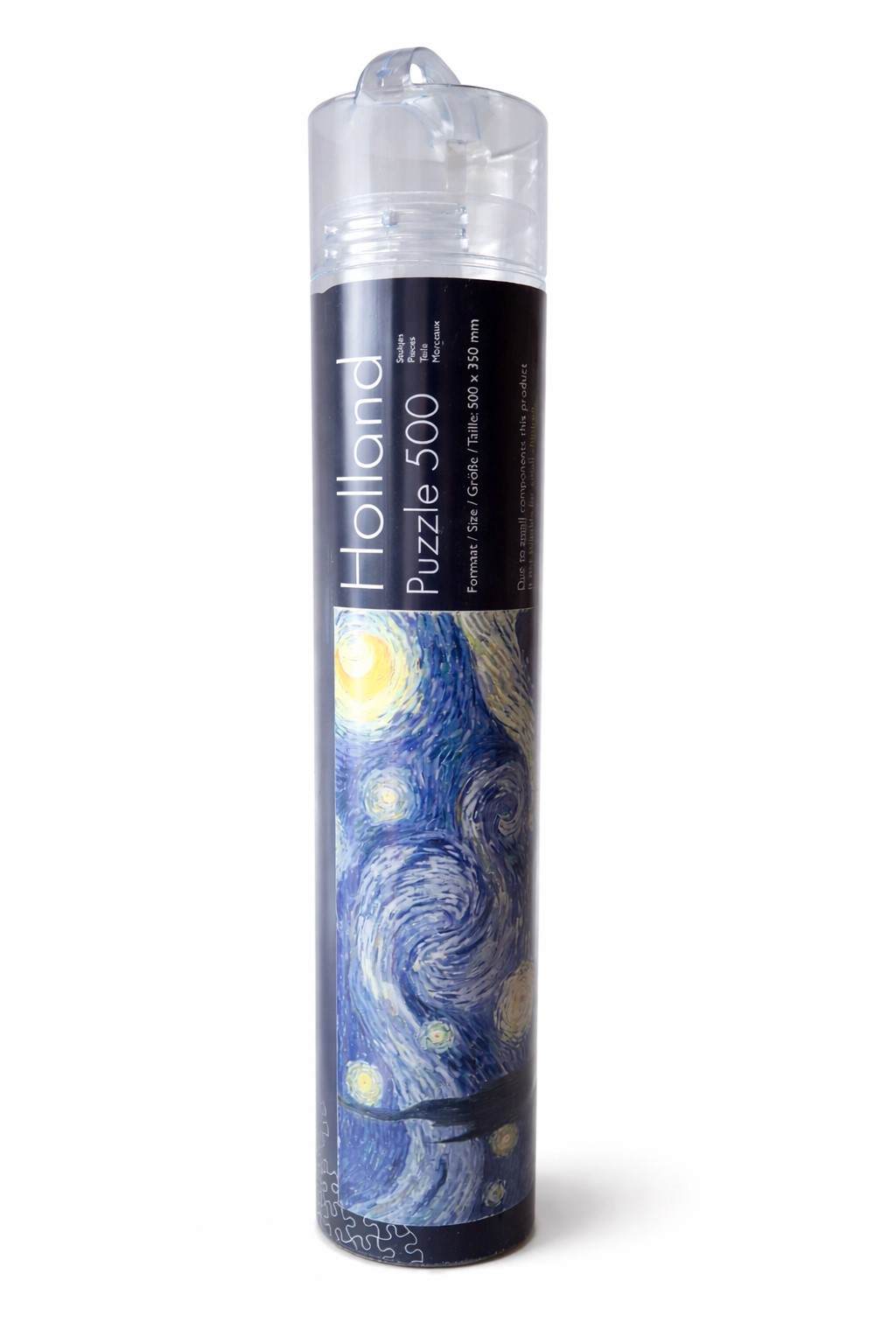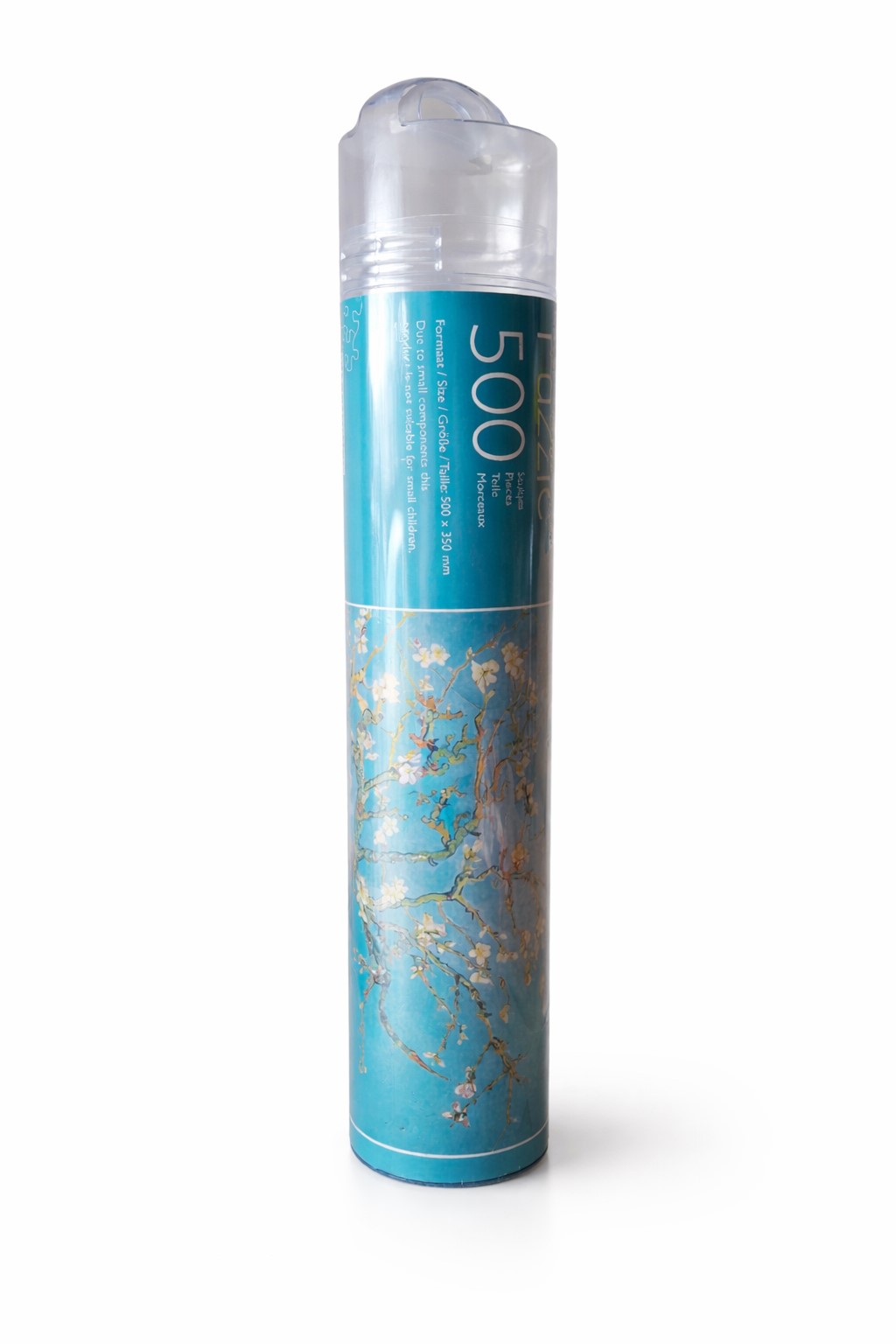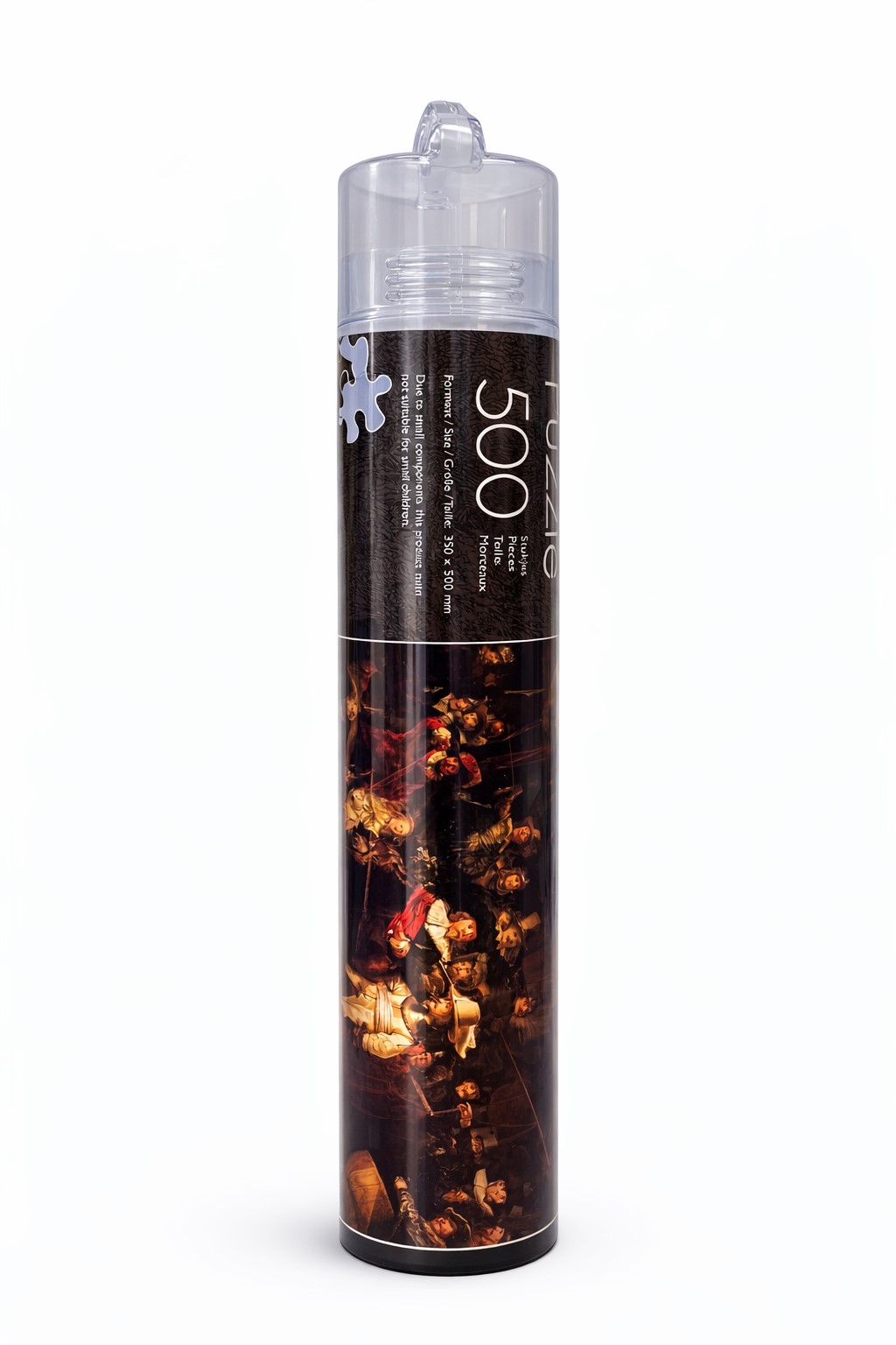 De puzzels zijn verpakt in een stevige, handige plastic koker.